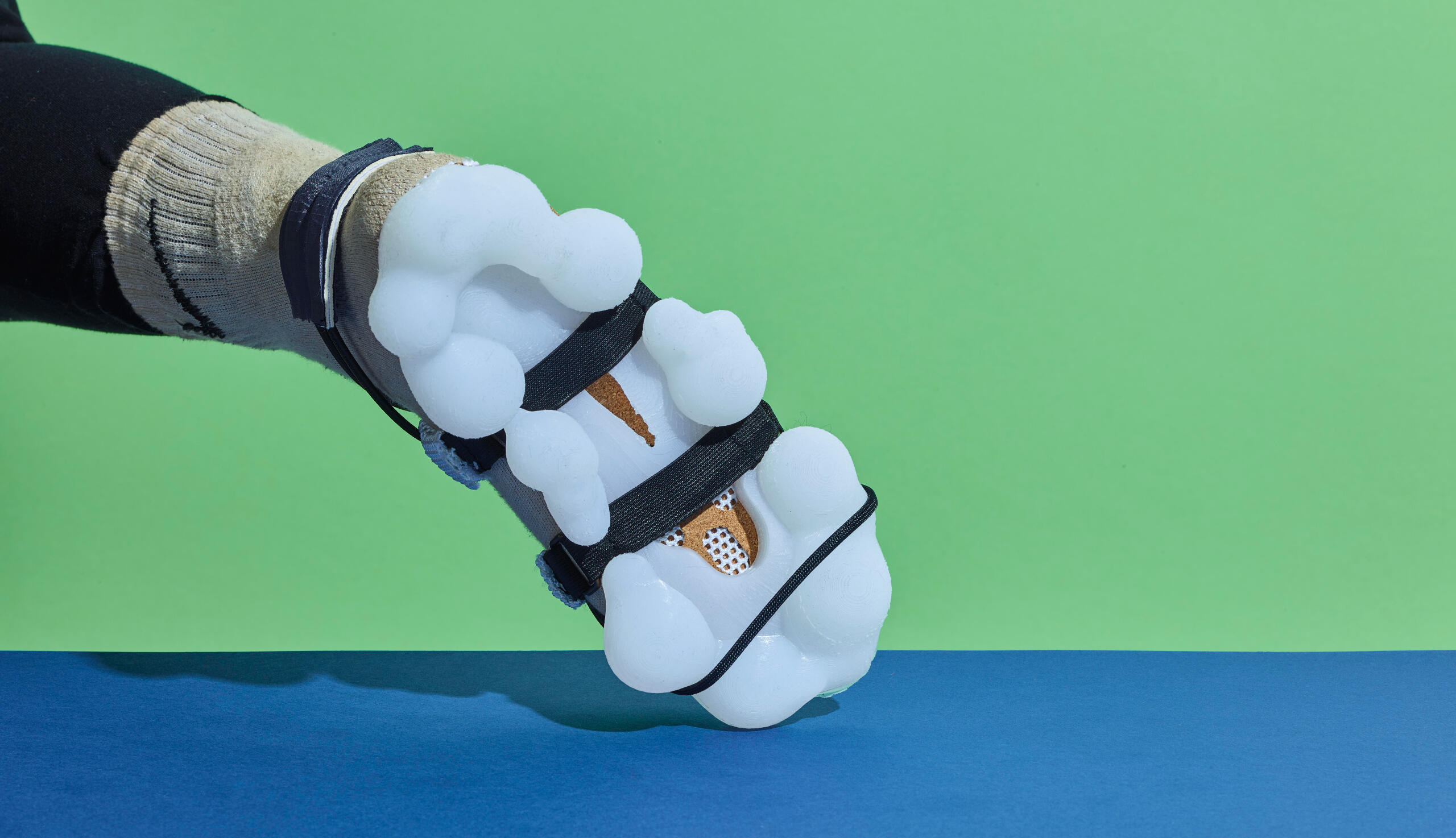 What if shoes were immersive and not just walking tools?Sand surfer is a shoe that allows the user to be grounded in the environment of intent. It achieves this by allowing sand into the shoe.Would the user want sand in their shoes?...The sand is separated by a waterproof cork membrane, the mesh netting incorporated underneath allows sand to enter, however this membrane allows the user to sense the sand against their feet without direct contact with the user, Immersing them with the environment on a sandy shore, or the Desert dunes.This concept was Inspired by the Designer's visit to the Desert. The Shoe's bubbly form was inspired by ridges on Quad bike or ATV tyres. The soles can be separated and the cork unit can be worn alone as a light-weight sandal on the beach.
